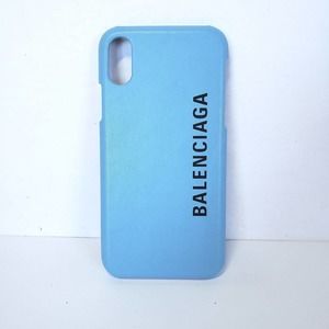 Balenciaga Designer IPhone Phone 6" Case X XS Cover Solid Blue Logo Leather