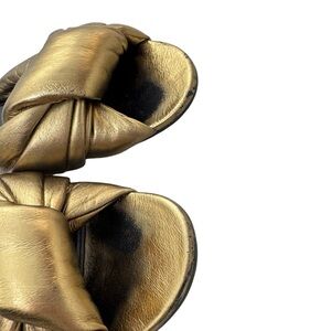 Balenciaga Drapy Gold Leather Slip On Slide Sandals
