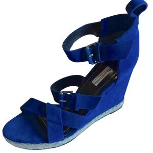Balenciaga Electric Blue suede Wedge Sandals with Crisscross Straps