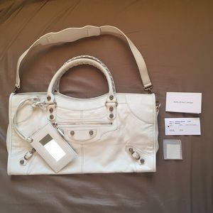 Never used, never worn, AUTHENTIC Balenciaga handbag - Part Time Giant 12 Blanc Light with Rose Gold hardware. Tags and dust bag