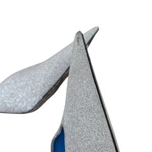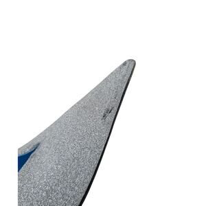 Features slingback with bow on back, pointed toe (so good), v shape upper, blue leather sole, glitter bottom sole