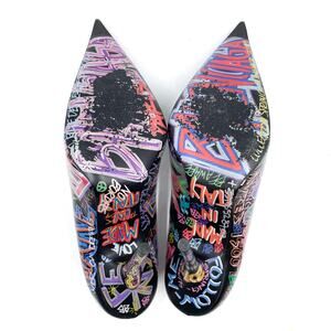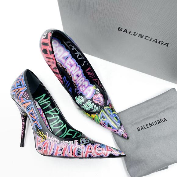 Balenciaga Graffiti Knife Pumps Black Leather Heels Pointed Sz 37.5 / 7.5 US