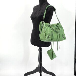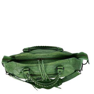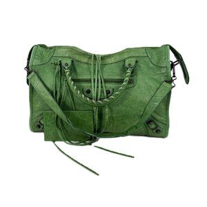 •Super soft, Stylish green shoulder bag. Features braided handles. Front zip pocket. Iconic Balenciaga design.