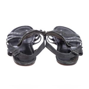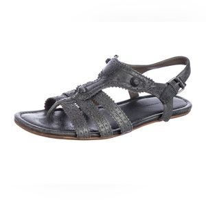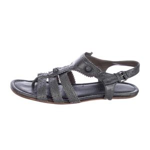Balenciaga Grey Leather Arena T-Strap Flat Sandals