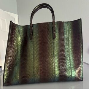 BALENCIAGA beautiful snake skin ๐ iridescent purple and green tote. Absolutely gorgeous, in beautiful condition. Many luxury brands do not make exotic leather bags anymore so this is a real special find.