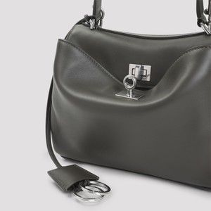 The Rodeo Top Handle Handbag from Balenciaga showcases a minimalist design with a modern flair. Crafted from luxurious khaki green leather, this handbag features a structured shape and a sleek finish. It combines elegance and functionality with an adjustable, detachable leather shoulder strap and a refined top handle. A striking silver-tone metallic buckle secures the front flap, enhanced by a side tonal tag with a keyring. The spacious interior includes one main compartment, while the silver-tone hardware elevates its luxurious appeal.