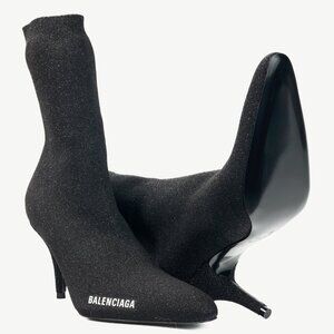 Balenciaga Knife 80 Black Glittered Stretch-Knit Ankle Boots