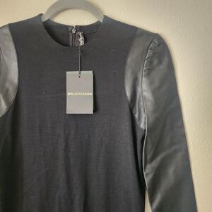 Balenciaga Leather Black Long Sleeve Contemporary Lamb Virgin Wool Top 36