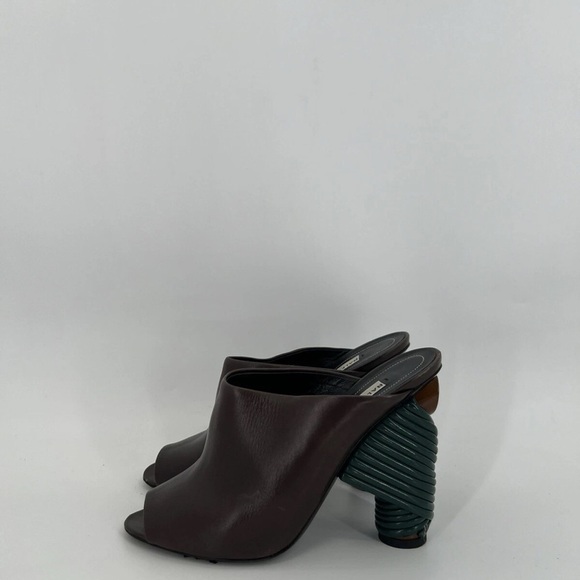 Balenciaga Leather Coiled Wrap Heel Mules Marron Cachou Brown Green Modern