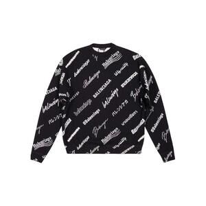 Balenciaga Logo All Over Knit Sweater Black/White SZ XS
