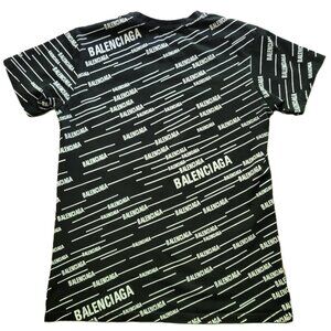 Balenciaga Logo All Over Print Black Unisex T-Shirt Size S Designer Streetwear