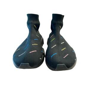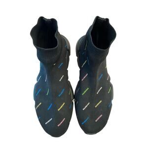 Balenciaga Logo Knit Fabric Speed Trainer Sock Sneakers Rainbow Streetwear US 9