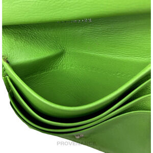 🔴 Balenciaga Logo Print Bifold Wallet - Green Leather