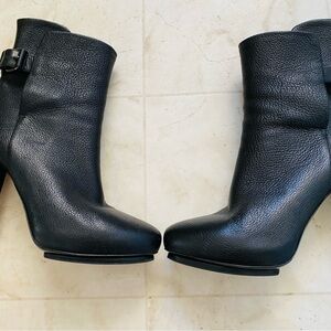 Balenciaga Made in Italy Black Textured Leather Block Heels Ankle Boots sz 8/38