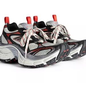 Stylish Balenciaga sneakers. Red and white design. Comfortable and trendy.