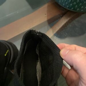 Minor defects such as some fraying at back of the shoe where you pull them on. Normal for the sock material.