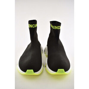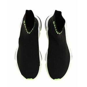 Balenciaga Mens Speed Black Yellow Logo Sock Flat High Top Trainer Sneaker 45 12