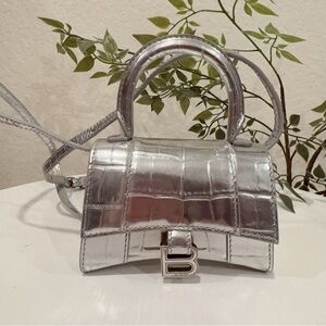 Balenciaga Mini Hourglass Croc-Embossed Leather Top Handle Bag / Crossbody NWT