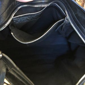Zipper runs smoothly one outside zipper compartment and one inside zipper compartment. Black woven lining Made in Italy code 1328B 10320