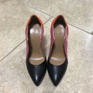 Beautiful fun, multi-colored pumps in black, pink, and orange. Architectural footwear. New with box.