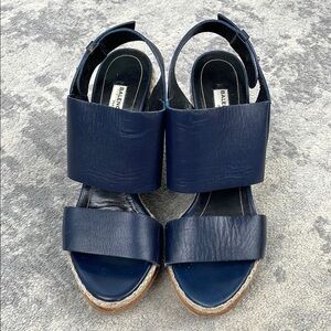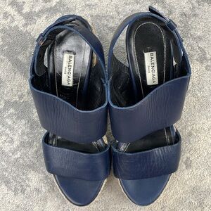 Balenciaga Navy Blue Leather Espadrille Wedge Sandals Sz 39