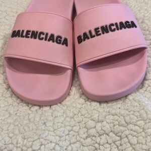 The Prettiest Color Pink With Black Balenciaga Logo On The Strap, Easy To Slide On And Off, Wear To The Pool, Running Errands, Gym, Or Vacation, Comfortable