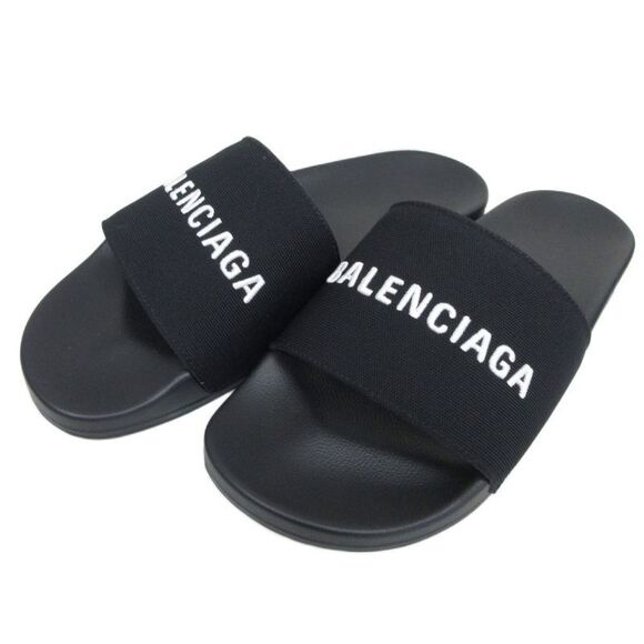 098-902511290032 Balenciaga BALENCIAGA POOL SLIDE SANDAL Pool slide sandals shower sandals embroidered logo 43 Black Black ■MNK3