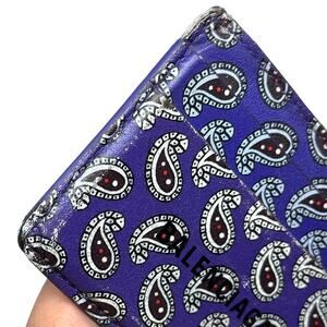 Beautiful Purple Cardholder Wallet with Gorgeous Paisley Pattern throughout and Logo across the front.