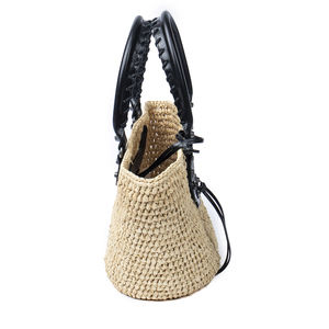 Balenciaga Shoulder Bag Panier XS Basket Tote in Beige/Black Woven Raffia Canvas and Aged Brass hardware. The product is in Perfect Condition (AA).