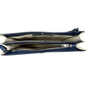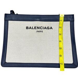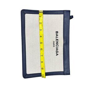 Balenciaga Paris Blue & White Canvas Leather Clutch stylish minimalist handbag
