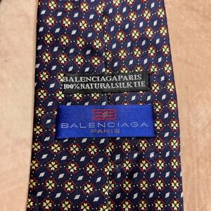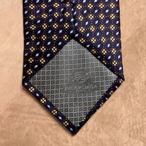 Balenciaga Paris Natural Silk Neck Tie Navy Geometric Vintage Formal Designer
