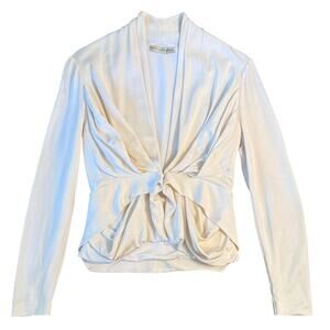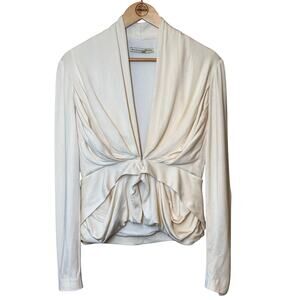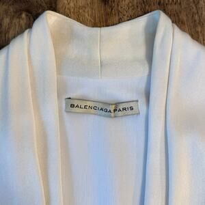 Balenciaga Paris Women’s Silk Blend V Neck Draped Blazer Jacket Cream Size 42
