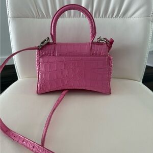 Balenciaga Pink Croc-Embossed Hourglass Bag