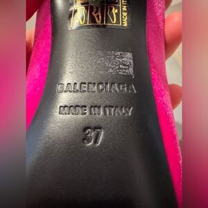 Step out in style with these stunning pink shoes from Balenciaga. Used once with perfect condition comes with the box and dust bag.Perfect for any occasion, these shoes offer both elegance and comfort.