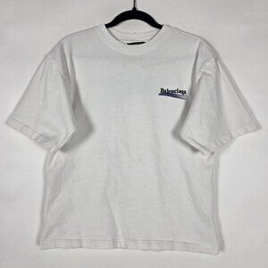 Balenciaga Political Campaign Blue Embroidered Mens XS Short Sleeve White Shirt
