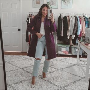 Balenciaga Purple & Black Check 100% Virgin Wool Pea Coat