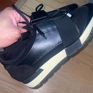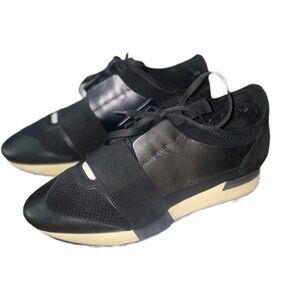 Balenciaga Race Runners ilow-top sneakers combine sport-inspired style with luxury craftsmanship, making them the perfect fusion of fashion and function. Crafted from premium mesh, leather, and rubber, they feature a modern silhouette with covered toes, signature vamp strap detailing, and pull-on tie-up closure for a secure fit. The flat sole ensures superior comfort and ease of wear throughout the day.