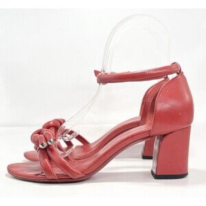 Balenciaga Red Block Heels w/ Knot Detail Silver Accents Sandal Sz EU 36.5 6.5