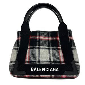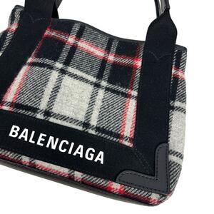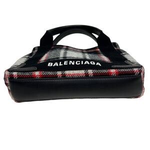 Balenciaga Red Gray Wool Plaid Cabas Convertible Small Tote