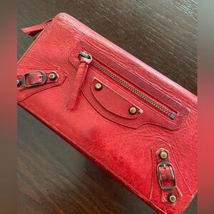 Balenciaga Red Leather Long Wallet Red leather Authentic Used