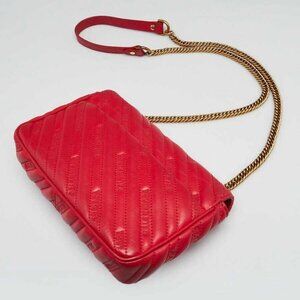 Balenciaga Red Quilted Embossed Leather BB Chain Round Small Flap Bag