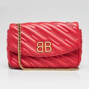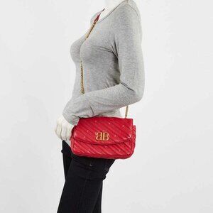 Balenciaga Red Quilted Embossed Leather BB Chain Round Small Flap Bag