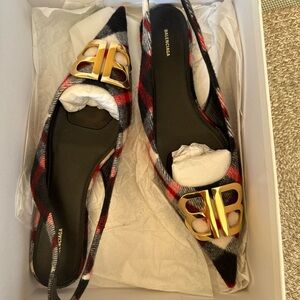 Chic plaid design. Bold red and black colors. Elegant gold detail on the front. Been worn twice , unfortunately they a bit small for me , they marked as size 40eur sizing , but run a bit smaller, I’m normally size 9,5, so these are def true size 9