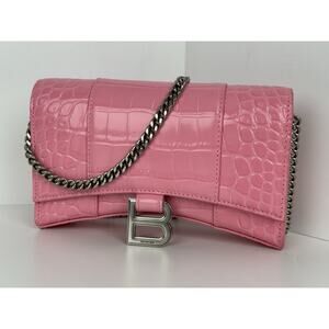 Balenciaga Shiny Calfskin Crocodile Embossed Hourglass Chain Bag Sweet Pink C-1