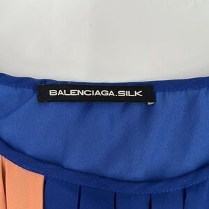 Balenciaga Silk Pink & Blue Color Block Pleated Dress Size FR38 = US 8