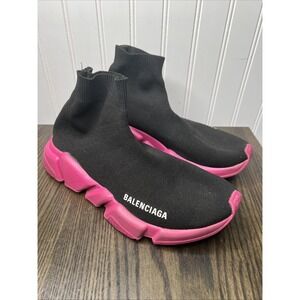 Balenciaga Speed Knit Black/Pink Sock Trainer Sneakers Women's EU 37 US 7