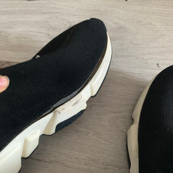 Authentic Balenciaga Speed Runner sneakers in size 39. These iconic sock-style sneakers feature a stretch-knit upper, lightweight memory sole technology, and the signature Balenciaga logo on the side. Designed for all-day comfort with a sleek, fashion-forward look.
