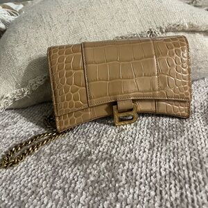 Chic tan croc-embossed design. Features a stylish chain strap. Perfect for elevating any look. AUTHENTIC. excellent condition