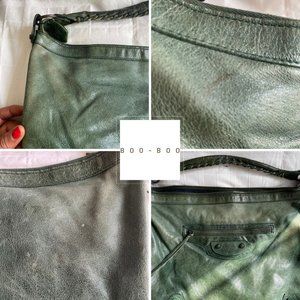 This hobo shoulder bag classic need no introduction. Timeless, chic, rock & 'roll and well, quintessential Balenciaga. Stunning Forest Green color which strangely faded a bit at the front above the outside pocket. Make sure to look at the "Boo-Boo" picture to see other minor defects such as possible slight scratches/stains and signs of wear before you purchase. Luckily, none of these are noticeable once that baby is thrown on your shoulder and you go leisurely about your business. Note: if you wear a size 40 (euro) or 9 (us), treat yourself to a great little bundle and get the Prairie de Paris Green Pumps seen in the pictures. Bundle offers will be considered for all my listings, make sure to reach out with at least two items in your bundle. Offers under $355 not accepted.