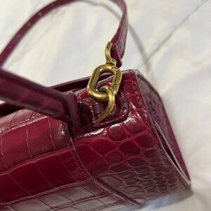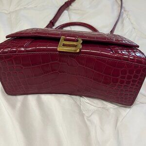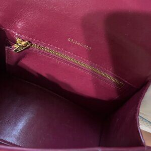 Classic Balenciaga piece, gold embellishments, and a textured dark fuchsia-colored bag makes it so needed for Fall season. Includes dustbag.